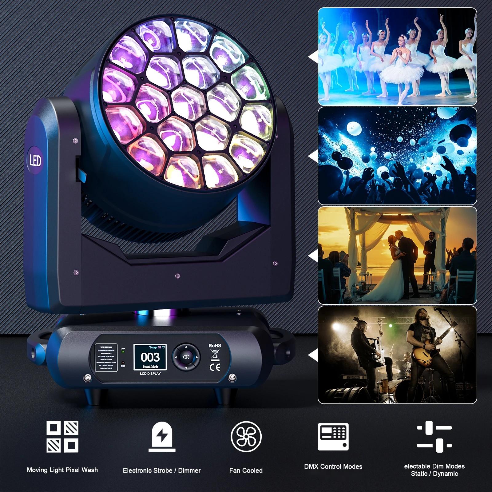 Light source:19pcs RGBW 4-in-1 40W high brightness lamp beads